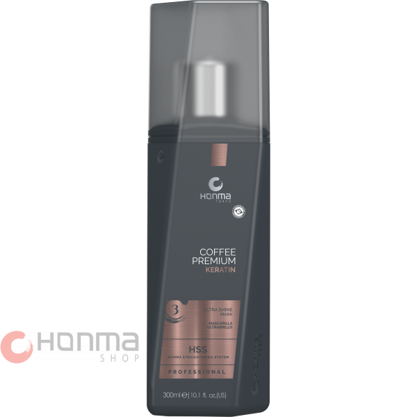 Маска Ультра Блеск Honma Coffee Premium Mask Ultra Shine 300 мл - увлажняющая маска для волос, в состав формулы которой входят система Luna Matrix и гликолевый экстракт зерен кофе Арабика. Маска активно действует на волосы, закрепляя результат выпрямления, обеспечивая им мягкость, увлажнение и придавая блеск.